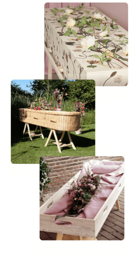 De overledene wordt gewikkeld in een doek en opgebaard op een plank. Intiem en natuurlijk.