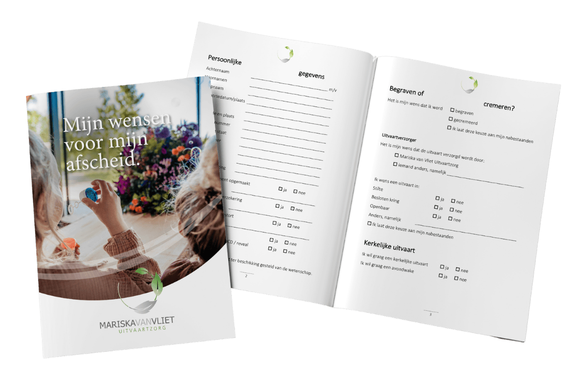 De overledene kan in een testament of wilsbeschikking zijn of haar wensen kenbaar hebben gemaakt voor zijn of haar uitvaart. Ook deze gegevens kun je alvast apart leggen en later aan ons geven.